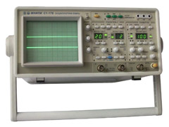 С1-176 - аналоговый осциллограф, предназначен для исследования периодических электрических сигналов путем визуального наблюдения и измерения их амплитудных и временных параметров по шкале экрана ЭЛТ в